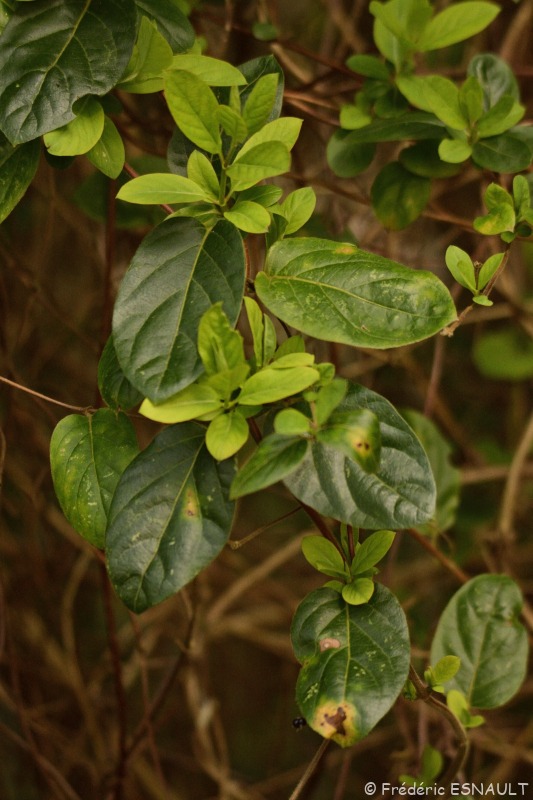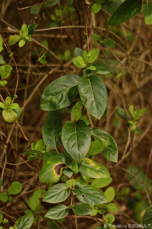 Le Chèvrefeuille du Japon (Lonicera japonica) pousse dans les haies de la forêt autour de l’étang de la Loy de la vallée du ru de la Brosse.