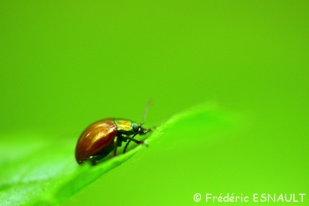 La Chrysomèle polie (Chrysolina polita) se trouve sur les plantes de la vallée du ru de la Brosse.