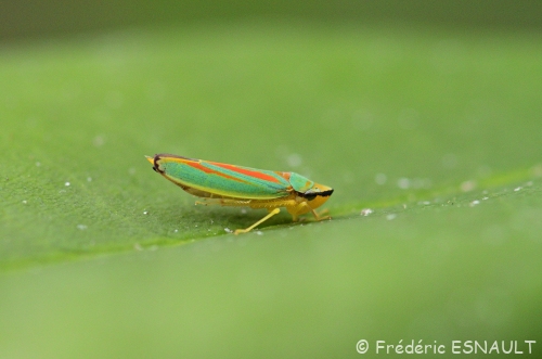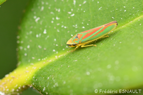 La Cicadelle du Rhododendron (Graphocephala fennahi) vit dans les jardins de la vallée de la Brosse.