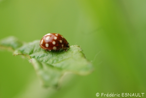 La Coccinelle à quatorze points (Calvia quatuordecimguttata) est une coccinelle qu’on reconnaît par le nombre de ses points blancs (14) sur fond orange/marron clair.