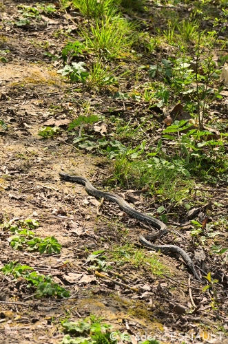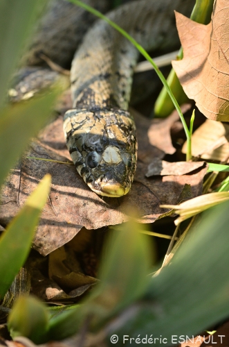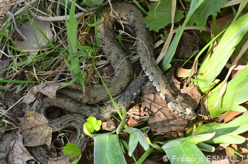 La Couleuvre helvétique (Natrix helvetica) prend le soleil au bord de l’étang de la Broce.