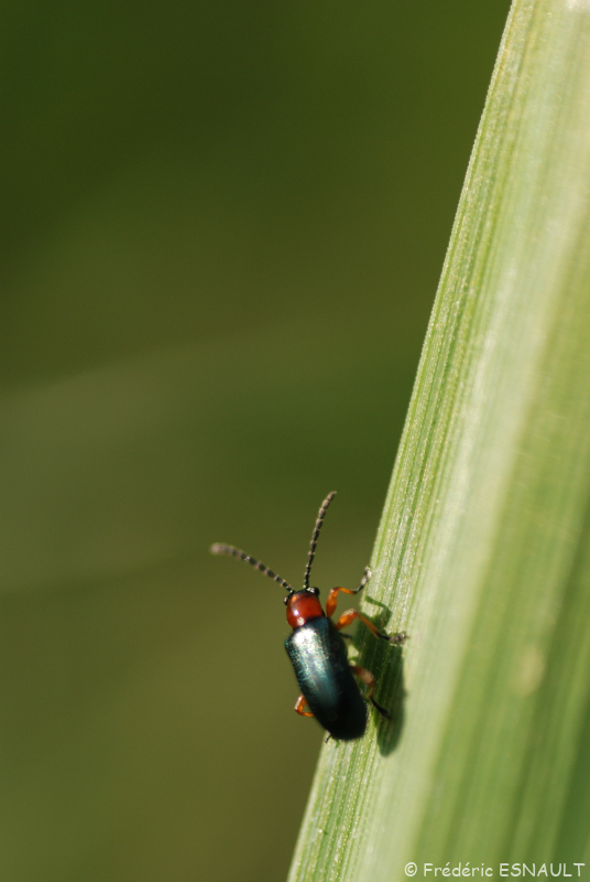 Le Criocère de l’Orge ou Léma à pieds noirs (Oulema duftschmidi/melanopus) se trouve dans les champs de la vallée du ru de la Brosse.