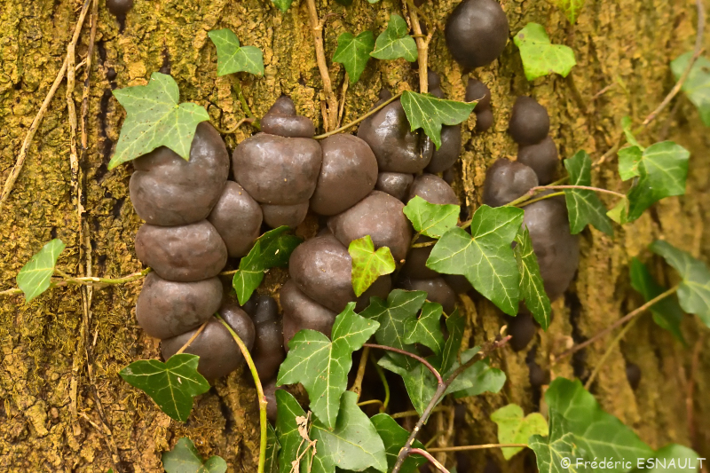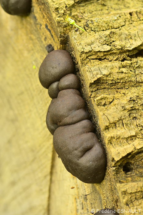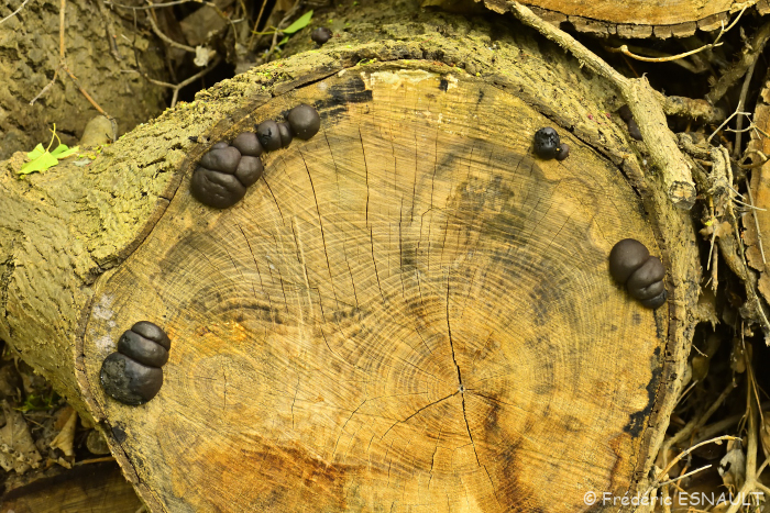 Le champignon, La Daldinie concentrique (Daldinia concentrica) se développe sur les Frênes (Fraxinus) tronçonnés dans le bois de l’étang de la Loy de la vallée du ru de la Brosse.