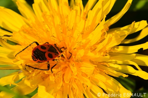 Le Gendarme ou Cherche-midi (Pyrrhocoris apterus) se trouve dans les champs de la vallée de la Brosse.