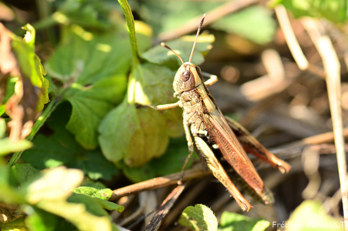 Le criquet Gomphocère roux (Gomphocerippus rufus) vit dans les champs de la vallée de la Brosse.