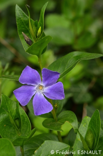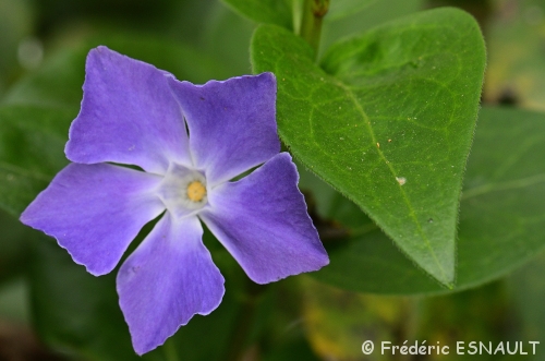 La Grande pervenche (Vinca major) fleurit au printemps et révèle parfois d’ancien site archéologique se rencontre dans le bois de l’étang de la Loy.