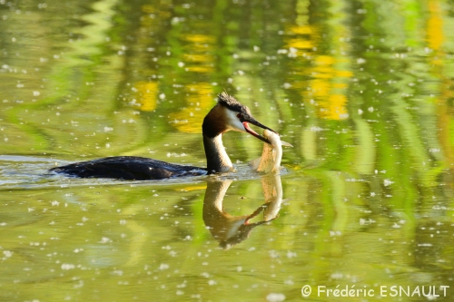 Le Grèbe huppé (Podiceps cristatus) vit à demeure dans de l’étang de la Loy dans la vallée de la Brosse.