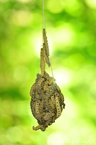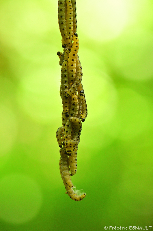 L’Hyponomeute du Saule (Yponomeuta rorrella) est un papillon visible dans le bois de l’étang de la Loy au travers d’un regroupement de chenilles qui pendent attachées à un filament sous les Saules & Peupliers.