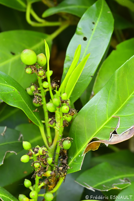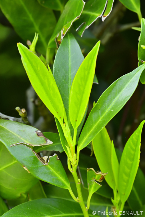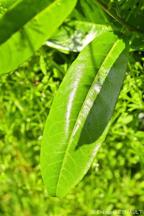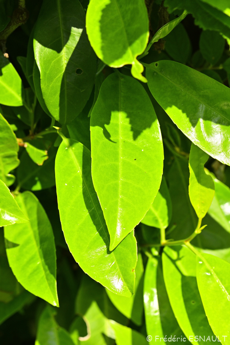 Le Laurier-cerise ou Laurier-palme (Prunus laurocerasus) est présent dans les haies des jardins de la vallée de la Brosse.