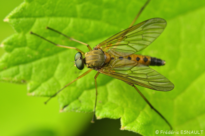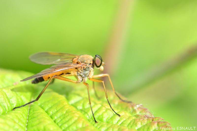 Une autre Leptis mais d’une autre espèce (les ailes sont tâchées de noir) : Nouveauté : Leptis bécasse (Rhagio scolopaceus)