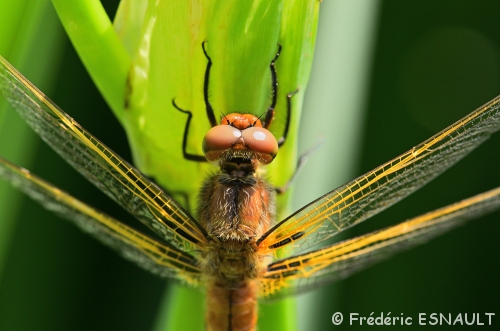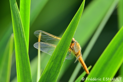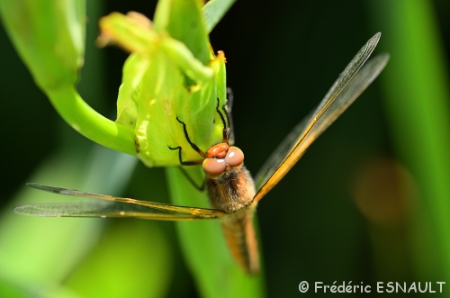 Et voici la première, dans sa livrée orange vif, caractéristique de l’espèce lors de sa sortie toute fraiche de son exuvie (l’émergence) : la Libellule fauve (Libellula fulva)