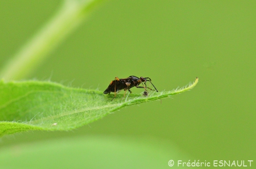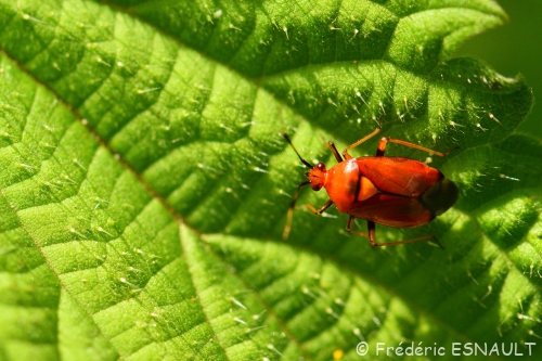 La punaise Miride rouge (Deraeocoris ruber) sur une feuille au bord du bois de l’étang de la Loy.