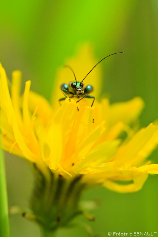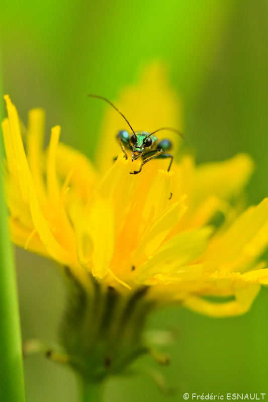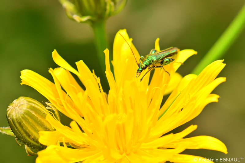 L’Œdémère noble ou Cycliste maillot-vert ou Cycliste émeraude (Oedemera nobilis) est un coléoptère visible sur les fleurs de la vallée du ru de la Brosse.