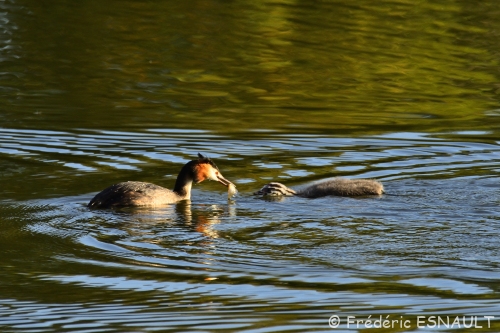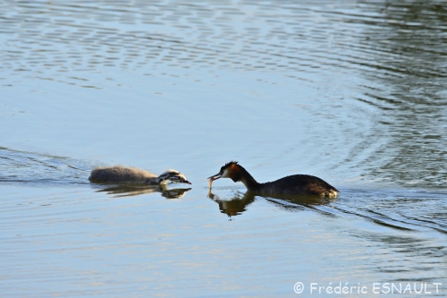 La Mouette rieuse (Chroicocephalus ridibundus) & le Grèbe huppé (Podiceps cristatus) en pleine pêche dans l’étang de la Loy.