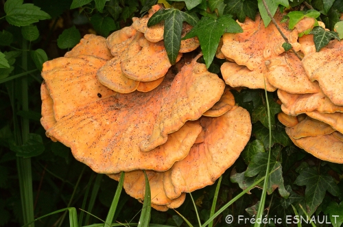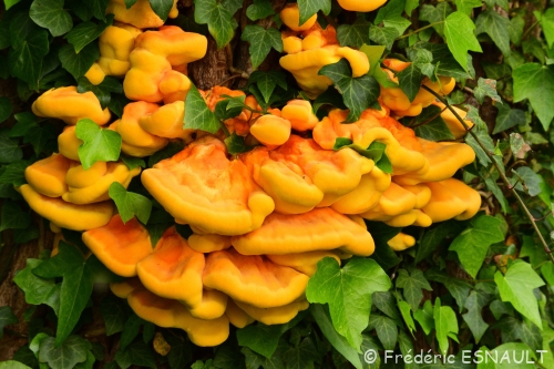 Le Polypore soufré (Laetiporus sulphureus) se trouve dans le bois de l’étang de la Loy de la vallée de la Brosse.