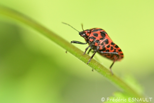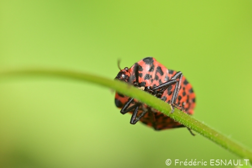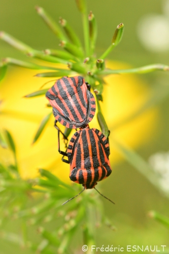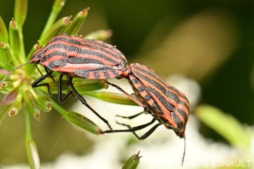 La Punaise arlequin ou Graphosome rayé (Graphosoma italicum) se rencontre dans les champs de la ferme de Saint-Thibault-des-vignes dans la vallée du ru de la Brosse.
