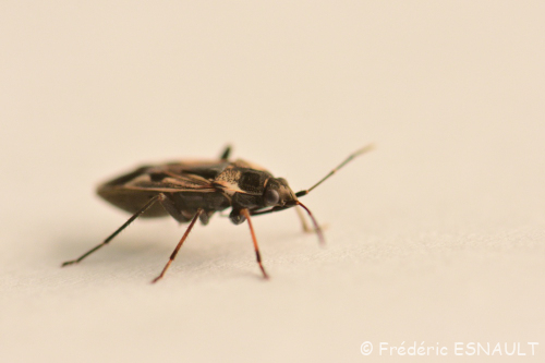 La Punaise commune (Rhyparochromus vulgaris) se trouve dans les prairies de la vallée du ru de la Brosse.