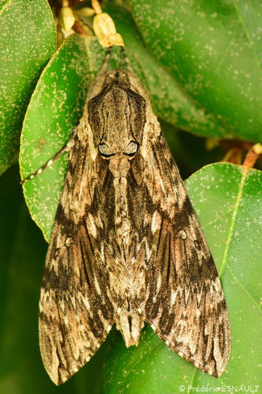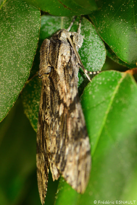 Le Sphinx du liseron (Agrius convolvuli) est un papillon visible dans le bois de l’étang de la Loy.