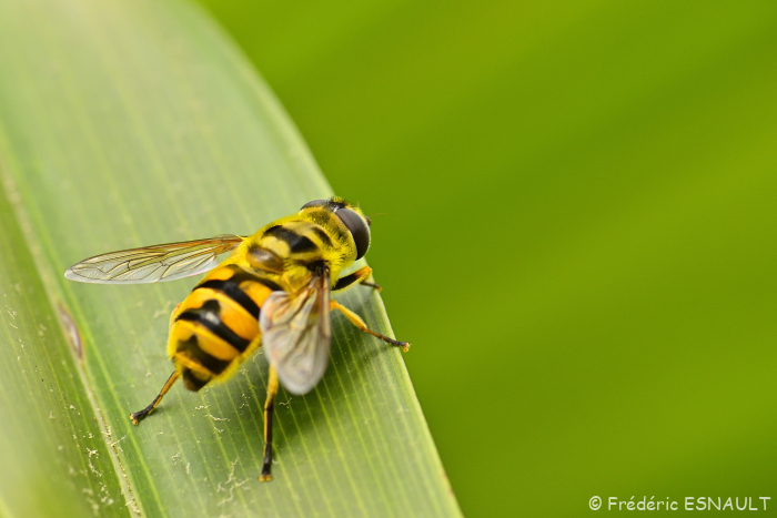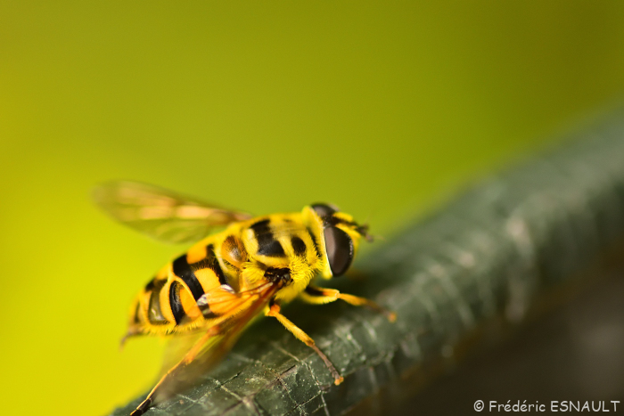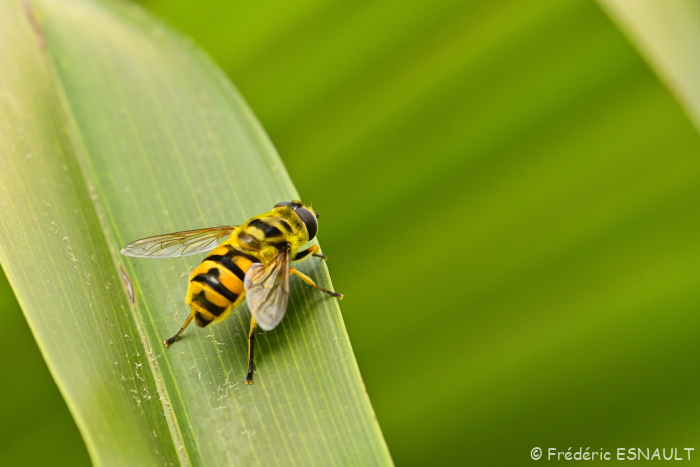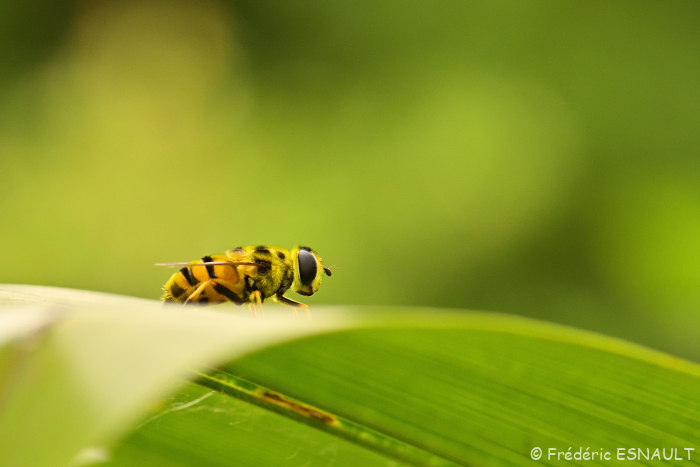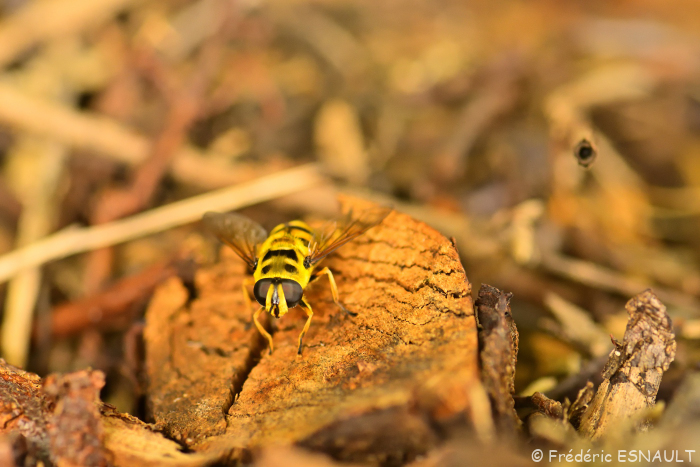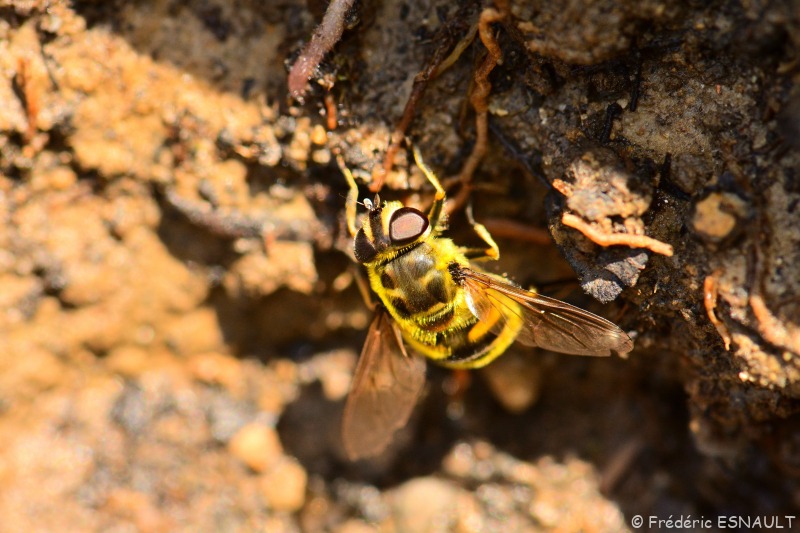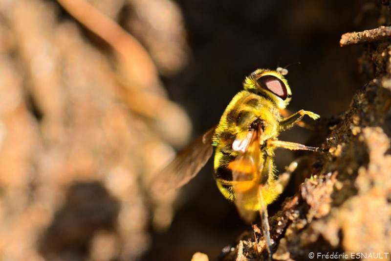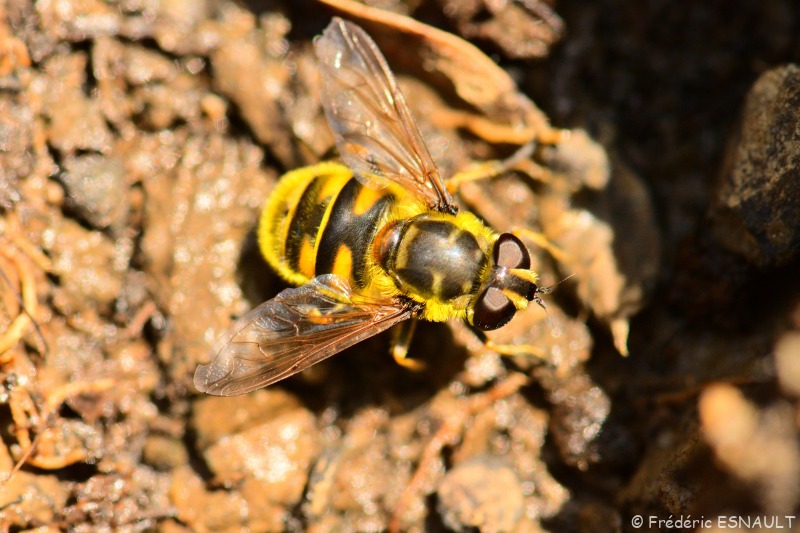 Le Syrphe tête de mort ou Éristale des fleurs (Myathropa florea) vit dans les champs aux abords de l’étang de la Loy dans la vallée de la Brosse.