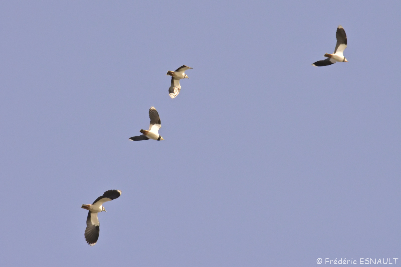 Le Vanneau huppé (Vanellus vanellus) en vol au dessus de l’étang de la Loy de la vallée du ru de la Brosse.