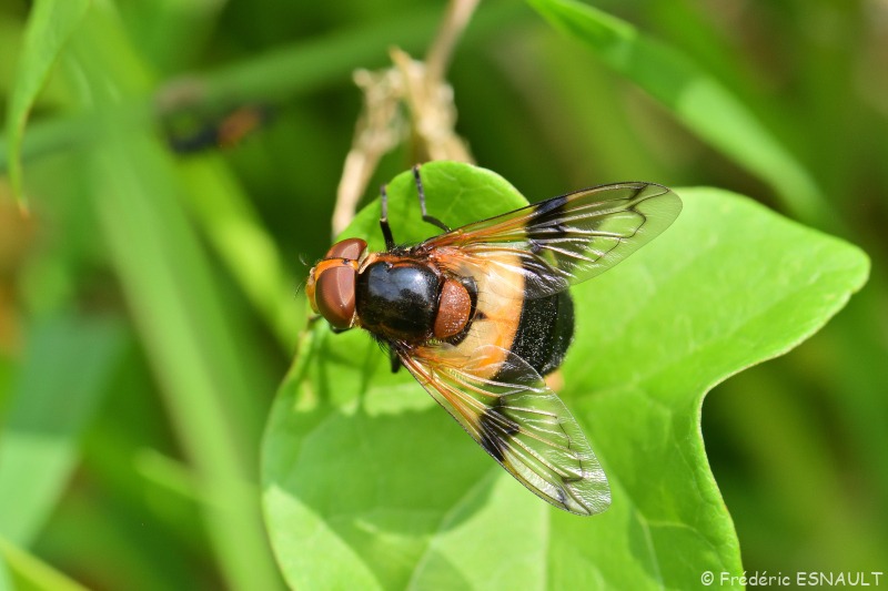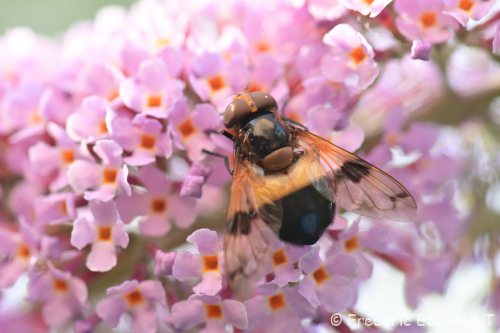 La Volucelle transparente (Volucella pellucens) est un Syrphe visible dans les champs de la vallée du ru de la Brosse.