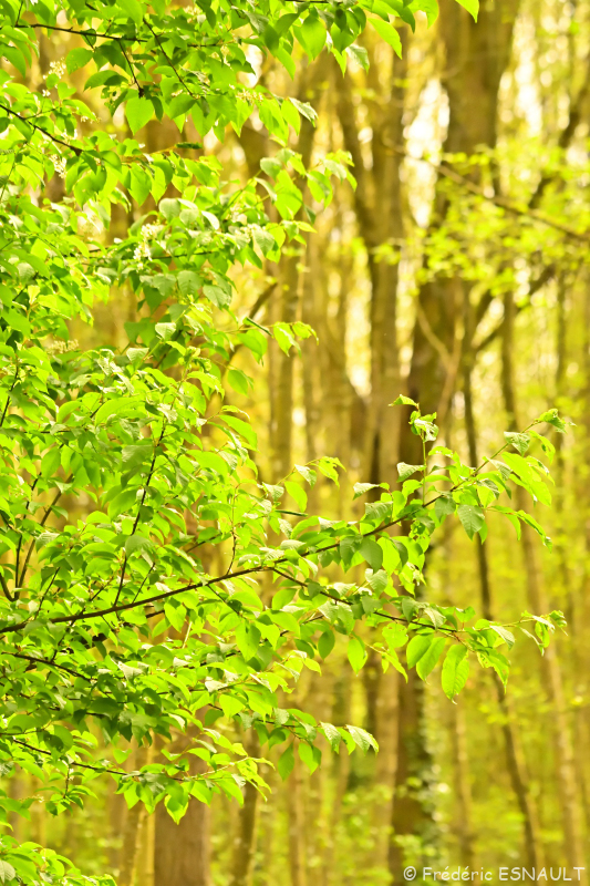 Le Cerisier à grappes ou Merisier à grappes (Prunus padus) pousse dans le bois humide de l’étang de la Loy de la vallée de la Brosse.
