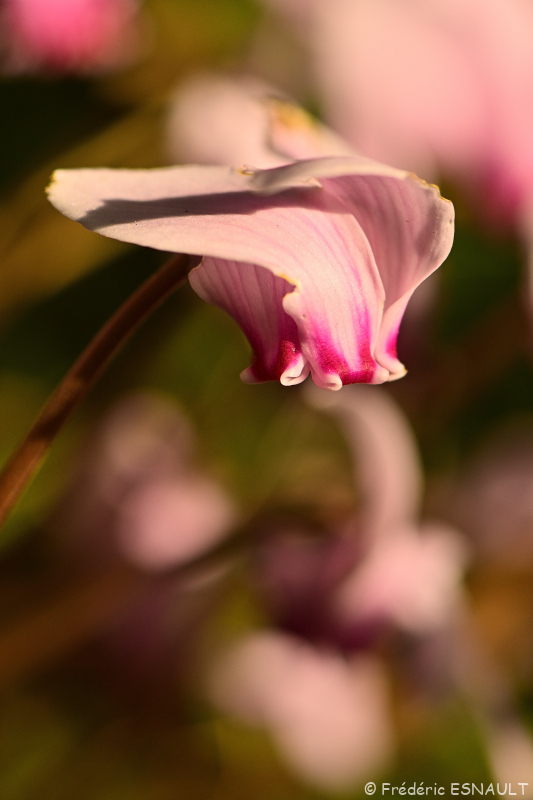 Le Cyclamen à feuilles de lierre ou Cyclamen napolitain ou Cyclamen de Naples (Cyclamen hederifolium) pousse dans l’allée du Château de Rentilly de la vallée de la Brosse & Gondoire.