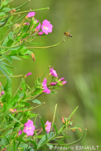 L’Épilobe hérissé ou Épilobe hirsute (Epilobium hirsutum) pousse au bord de la mare de la zone humide de la vallée du ru de la Gondoire.