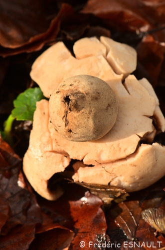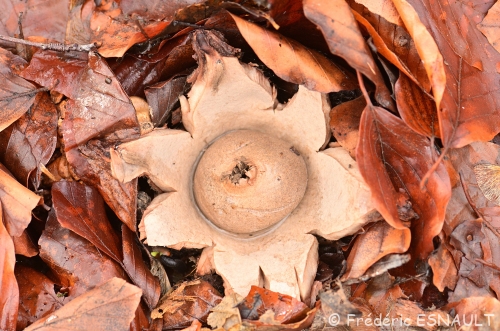 Découvert au pied d’un bel Hêtre du parc du château de Rentilly, ce champignon particulier possède un nom très parlant : l’Étoile de terre (Géastrum triplex). Les scientifiques lui préfèreront son appellation de Géastre plus conforme au genre auquel il se rapporte (Geastrum).