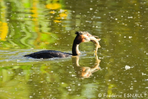 Le Grèbe huppé (Podiceps cristatus) vit à demeure dans de l’étang de la Loy dans la vallée de la Brosse.