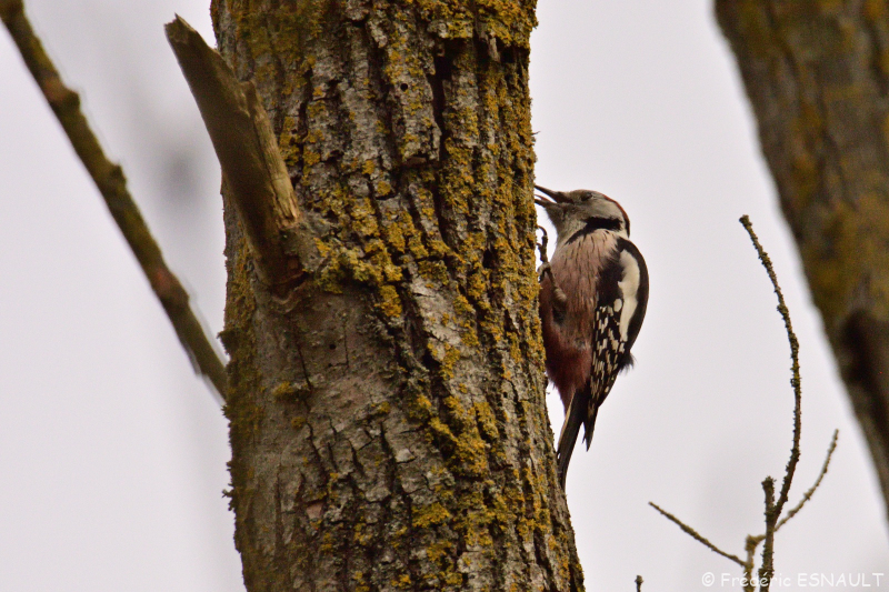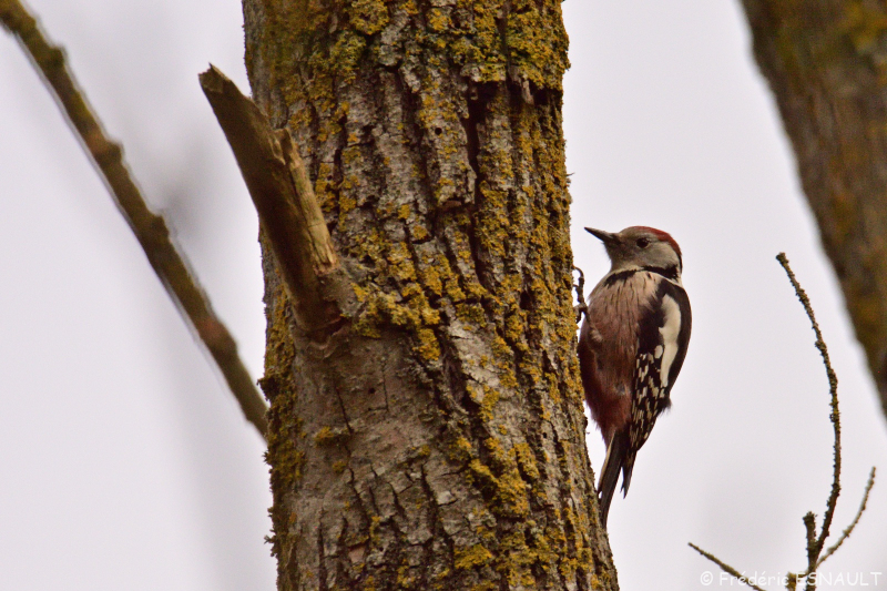 Le Pic mar (Dendrocoptes medius) est un oiseau qui tape sur les troncs des arbres du bois de l’étang de la Loy de la vallée du ru de la Brosse.