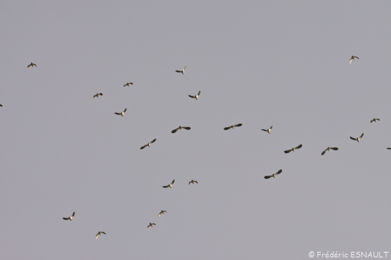 Le Vanneau huppé (Vanellus vanellus) en vol au dessus de l’étang de la Loy de la vallée du ru de la Brosse.